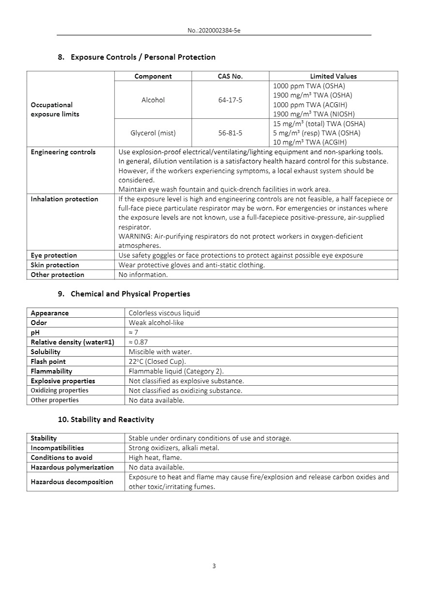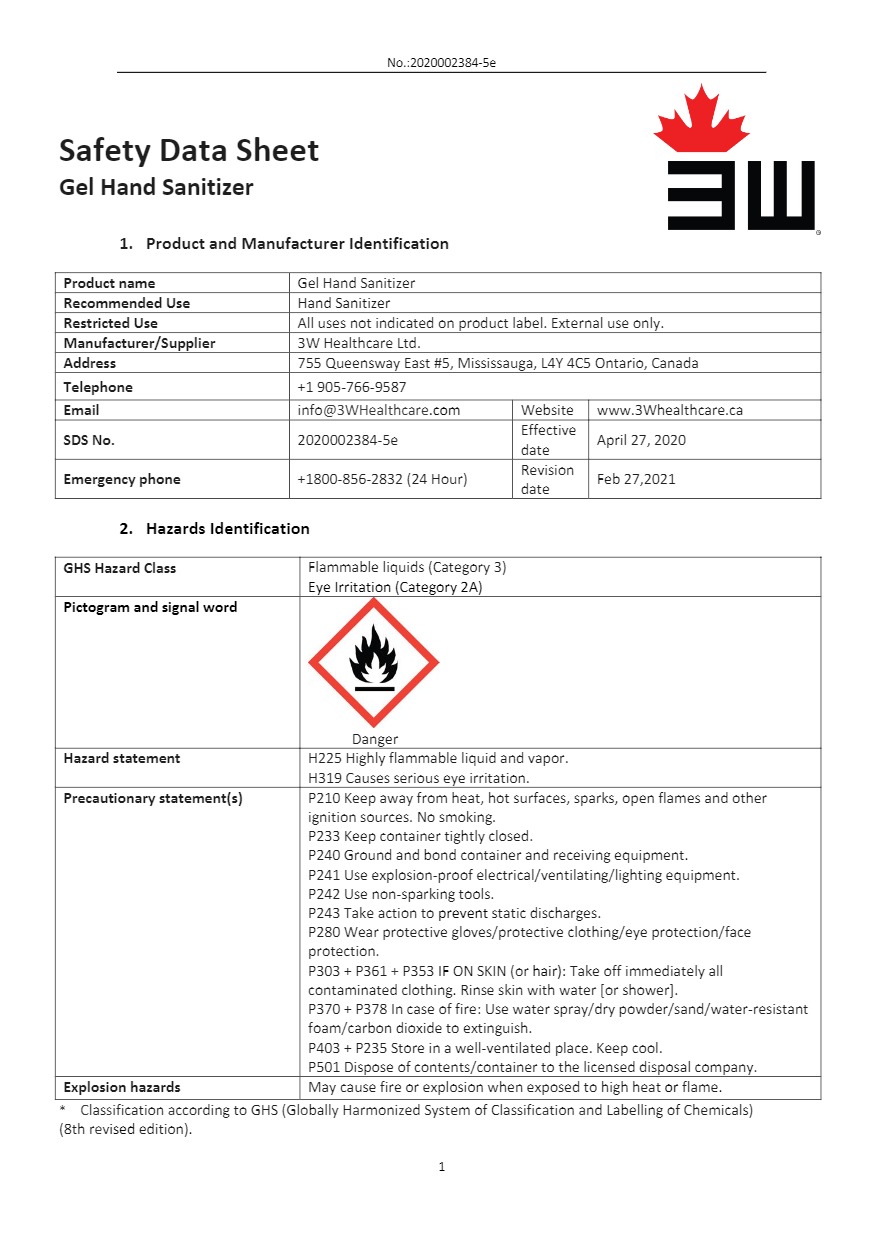 Download Safety Data Sheet for 3W Gel Hand Sanitizer